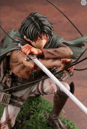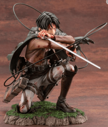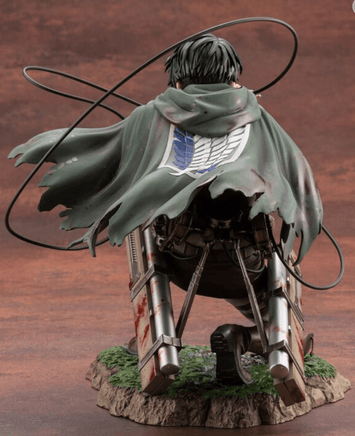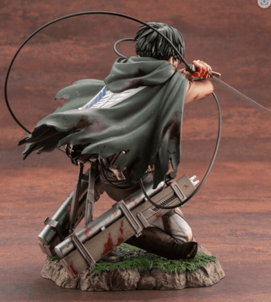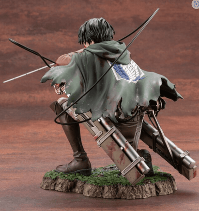 Levi, the world’s most valiant squad captain, joins Kotobukiya’s ARTFX J series! Based on the world’s best-selling manga series, Levi comes to life with this 1/7 scale statue. Although wounded in combat, Levi can be seen pointing the blade of his Three Dimensional Maneuver Gear at his enemy in this scaled rendition. Shin Tanabe has returned to craft this new rendition of Levi.