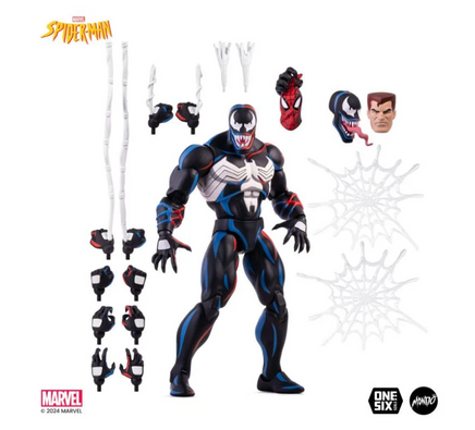 There's no more Eddie, and no more symbiote! Only Venom! Spidey’s worst nightmare, the Spider-Man: The Animated Series Venom 1/6 scale figure comes complete with a slew of swappable hands and portraits... and of course plenty of bendable, poseable web.